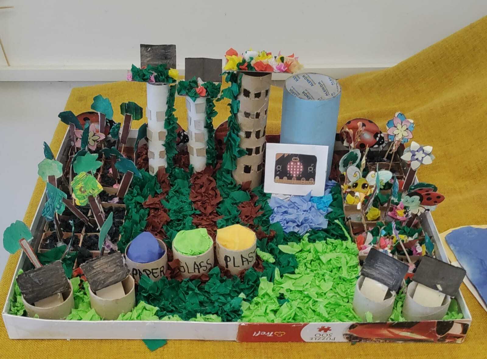 Tot în cadrul proiectului european, Smart Green Spaces, Integrating Urban Agriculture and Digital Education” 2024-1-BG01-KA220-SCH-00024411, în luna mai am derulat noi activități ce vizau construirea unei machete despre ce înseamnă spațiu smart( elevii clasei I), au descoperit ce înseamnă un oraș inteligent: un loc în care tehnologia este utilizată pentru a îmbunătăți viața locuitorilor, a proteja mediul și a eficientiza serviciile publice. Au învățat despre componente precum: transport inteligent, iluminat eficient, reciclare, energie verde, clădiri eficiente energetic etc. În acest scop, au construit panouri solare și stații de colectare selectivă, folosind materiale simple: hârtie, plastic, carton.