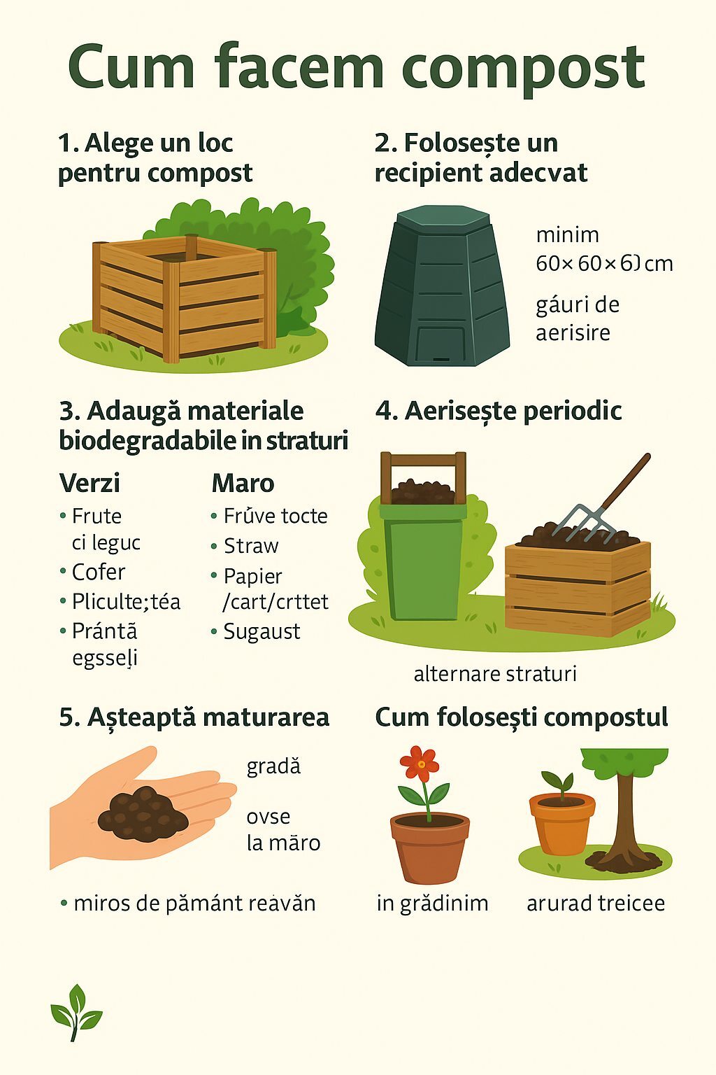 Grădinăritul ajută la reducerea stresului, la îmbunătățirea concentrării și la creșterea stimei de sine. Prin această activitate ne-am gândit ca elevii noștri să petreacă cât mai mult timp în natură, să învețe să folosească o parte din deșeuri. Să învețe ce înseamnă comportamentul ecologic și cum putem evita îngrășămintele chimice. Într-un colț al grădinii construite în curtea școlii, am folosit o ladă de lemn în care am adunat resturi de legume (coji de legume, fructe), frunze uscate, iarbă tăiată, zaț de cafea etc. Profesorul a explicat că acest compost se face în aproximativ 6 luni, ceea ce înseamnă că poate fi folosit ca îngrășământ natural, importanța compostului și reciclarea pentru protecția mediului. Activitate desfășurată în cadrul proiectului Erasmus+ Smart green spaces